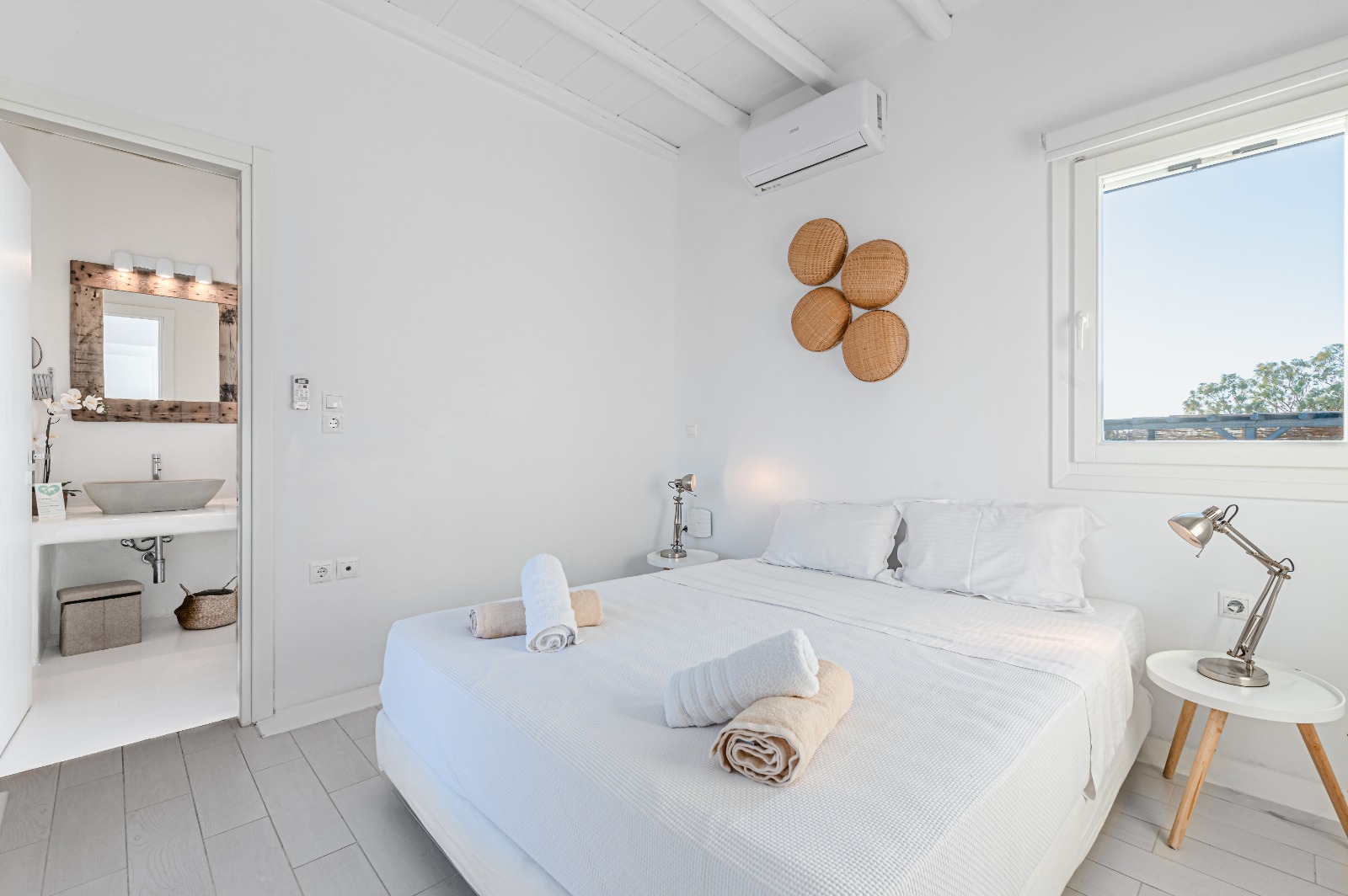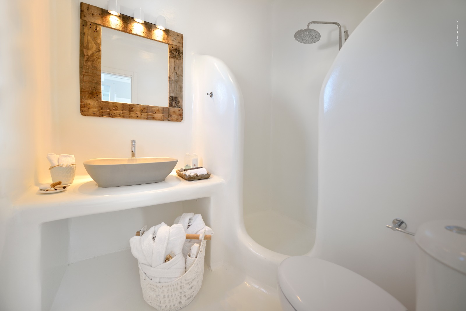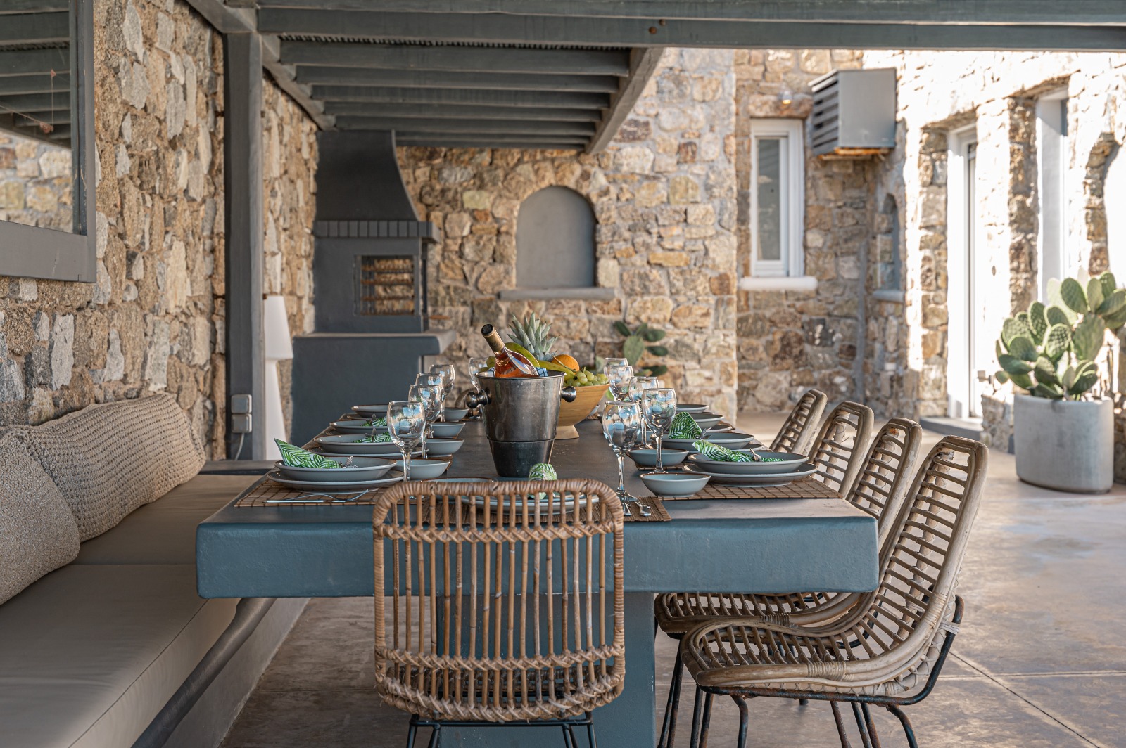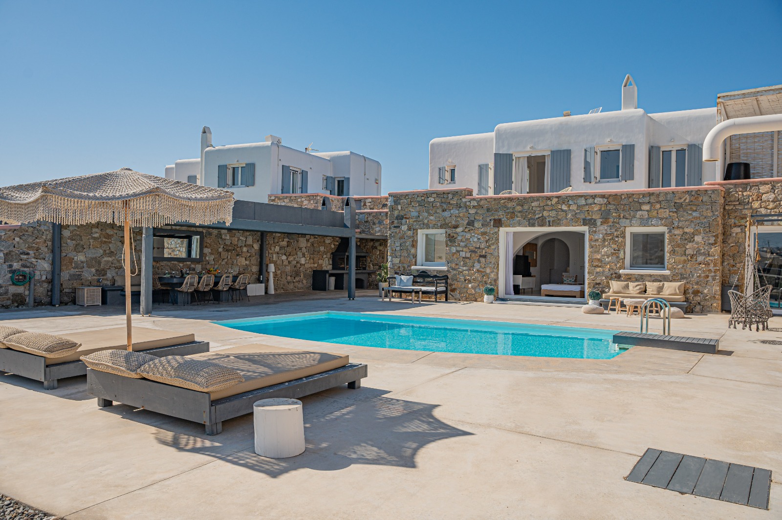Οι εξωτερικοί χώροι έχουν σχεδιαστεί με έμφαση στην απόλαυση, διαθέτοντας ιδιωτική πισίνα, άνετους χώρους χαλάρωσης και ομαλή σύνδεση μεταξύ εσωτερικών και εξωτερικών χώρων. Είτε απολαμβάνοντας τον ήλιο, είτε χαλαρώνοντας στο ήσυχο φυσικό περιβάλλον, οι επισκέπτες βυθίζονται στη μοναδική ομορφιά του μυκονιάτικου τοπίου.