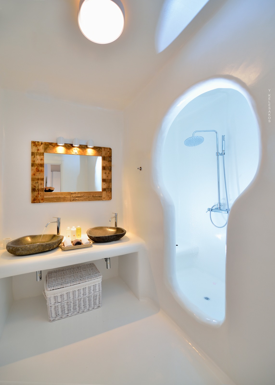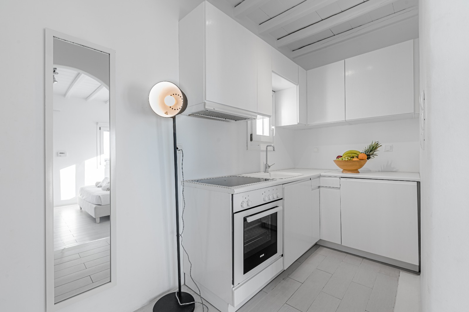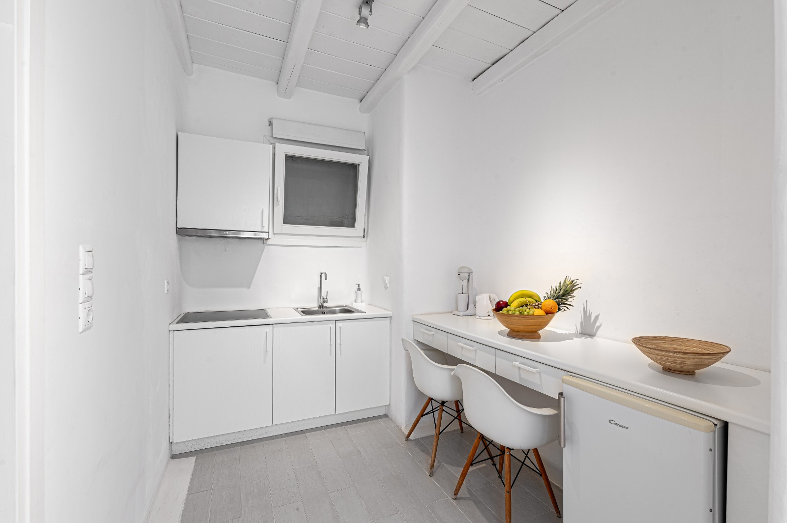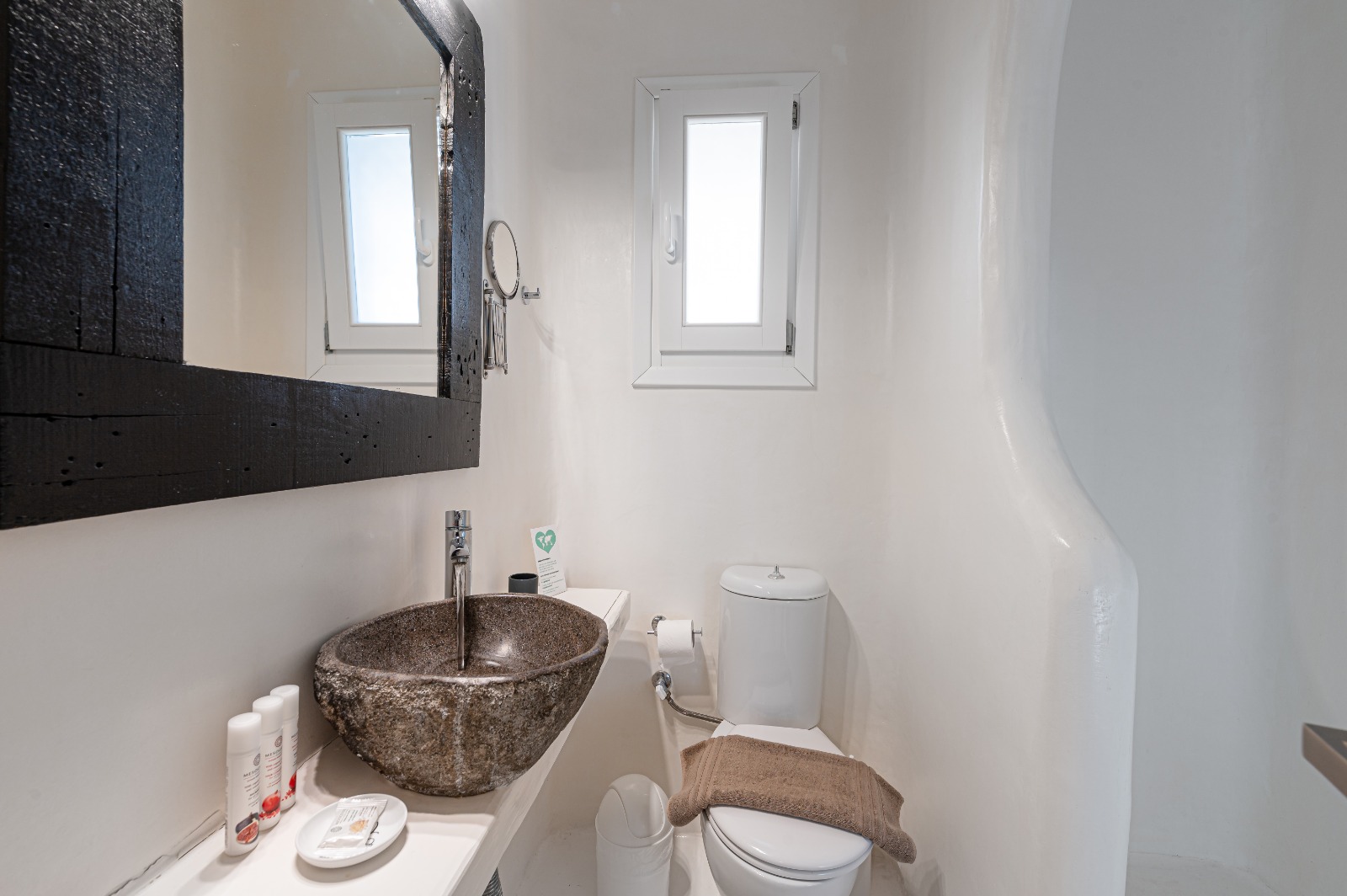 Οι εξωτερικοί χώροι έχουν σχεδιαστεί με έμφαση στην απόλαυση, διαθέτοντας ιδιωτική πισίνα, άνετους χώρους χαλάρωσης και ομαλή σύνδεση μεταξύ εσωτερικών και εξωτερικών χώρων. Είτε απολαμβάνοντας τον ήλιο, είτε χαλαρώνοντας στο ήσυχο φυσικό περιβάλλον, οι επισκέπτες βυθίζονται στη μοναδική ομορφιά του μυκονιάτικου τοπίου.