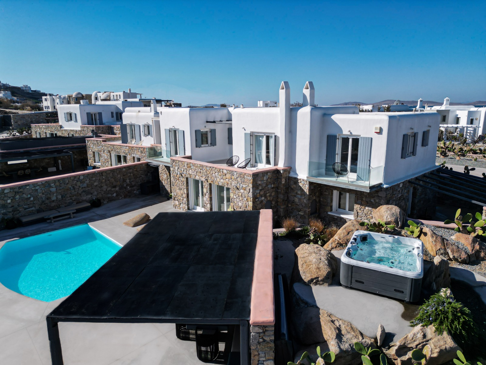 Σχεδιασμένες για απαιτητικούς επισκέπτες που αναζητούν εκλεπτυσμένη πολυτέλεια και απόλυτη ιδιωτικότητα, οι βίλες αποτελούν ένα ήσυχο καταφύγιο μακριά από την πολυκοσμία, προσφέροντας ταυτόχρονα εύκολη πρόσβαση στις πιο φημισμένες παραλίες, στα κορυφαία εστιατόρια υψηλής γαστρονομίας, στα πολυτελή καταστήματα και στη ζωντανή νυχτερινή ζωή της Μυκόνου. Εδώ, η κομψότητα και η απομόνωση συνυπάρχουν αρμονικά με τον κοσμοπολίτικο χαρακτήρα του νησιού, δημιουργώντας έναν μοναδικό προορισμό όπου κάθε στιγμή χαρακτηρίζεται από άνεση, φινέτσα και πανοραμική ομορφιά.