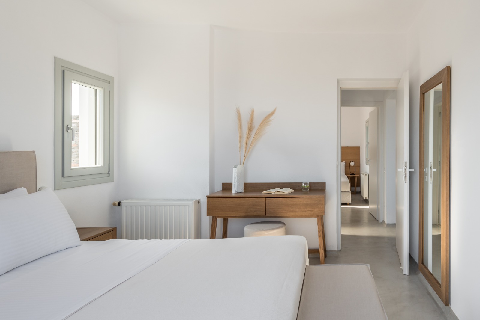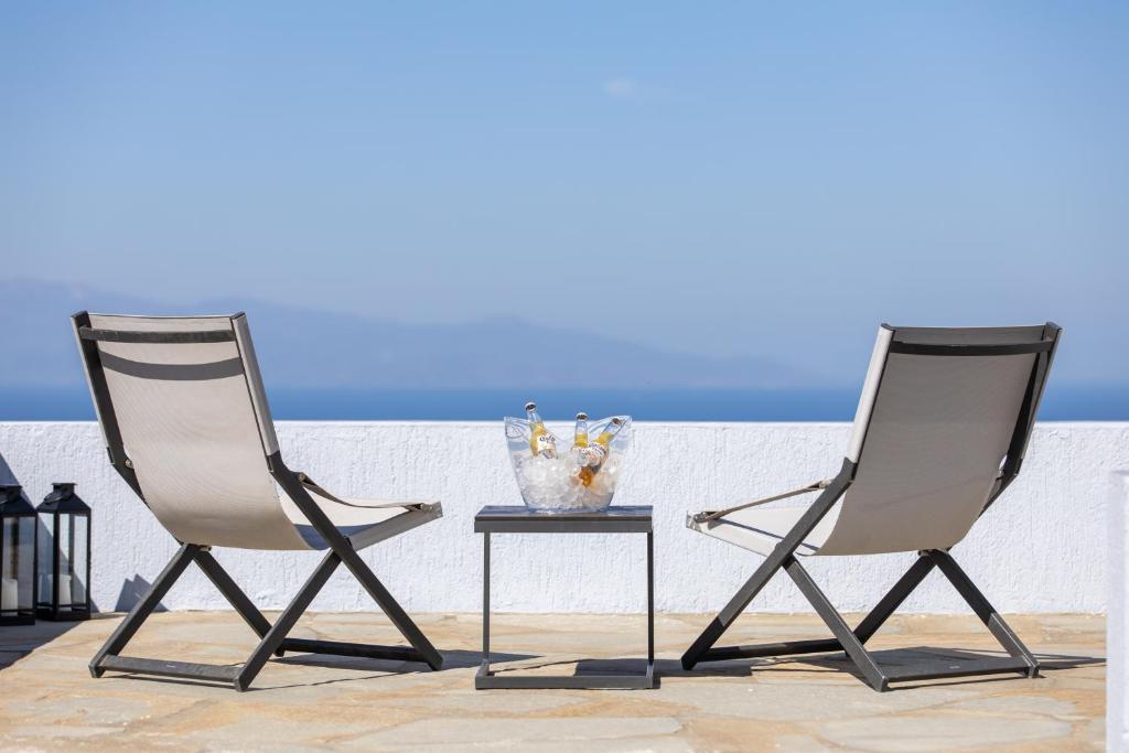 Κάθε βίλα αποτελεί ένα ιδιωτικό καταφύγιο, όπου οι εσωτερικοί και εξωτερικοί χώροι συνδέονται αρμονικά. Οι ευρύχωροι και κομψά διαμορφωμένοι εσωτερικοί χώροι, οι προσεκτικά επιλεγμένες λεπτομέρειες και οι ανοιχτοί υπαίθριοι χώροι προσκαλούν τους επισκέπτες να χαλαρώσουν και να επανασυνδεθούν με τον εαυτό τους, ενώ το ατελείωτο μπλε του Αιγαίου κυριαρχεί σε κάθε στιγμή της εμπειρίας.